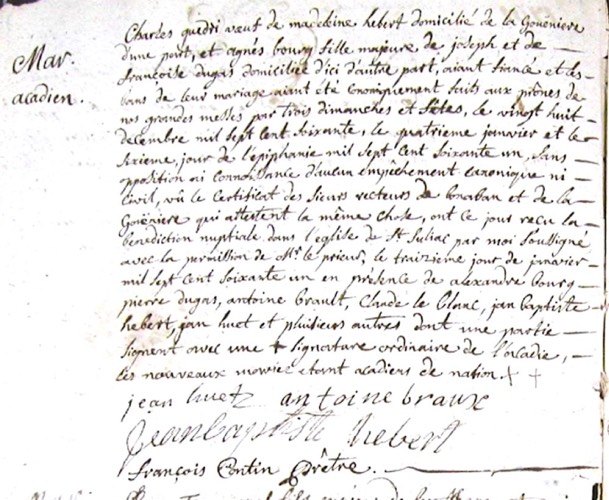 Charles Guédry [son of Pierre Guédry & Marguerite Brassaux] & Agnés Bourg Marriage (Saint-Suliac, Ille-et-Vilaine, Brittany, France; 13 Jan 1761; M) [10 NUM 35314 626 - Saint-Suliac - 1761-1761 Baptêmes-Mariages - Greffe] [pp. 1-2 of 11, 1761]