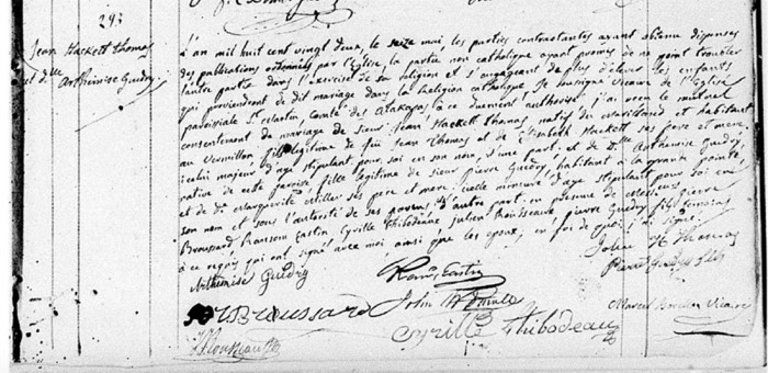 John Hackett Thomas & Arthemise Guedry Marriage (v. 6 #293; St. Martin de Tours Catholic Church; St. Martinville, St. Martin Parish, LA)
